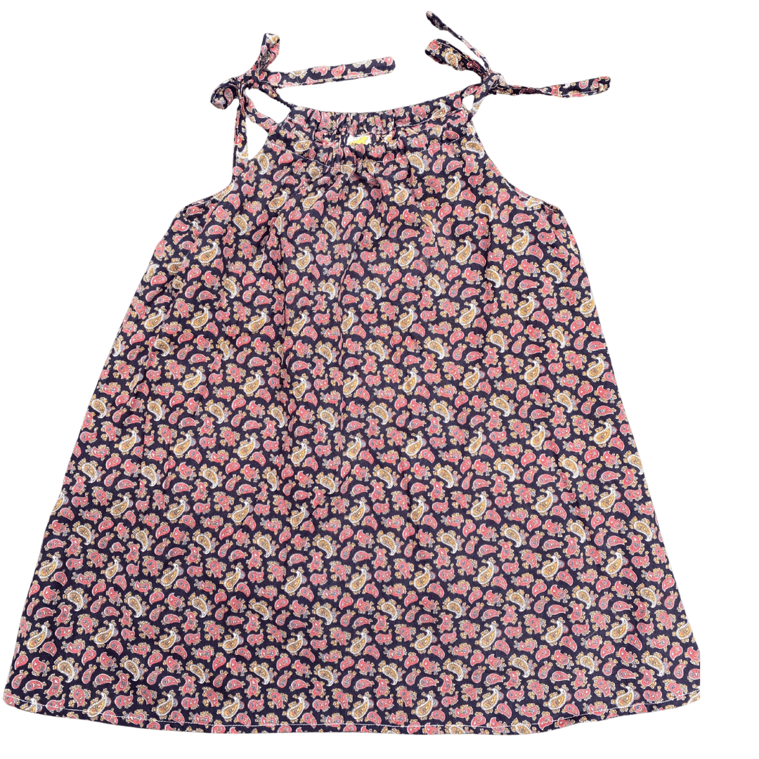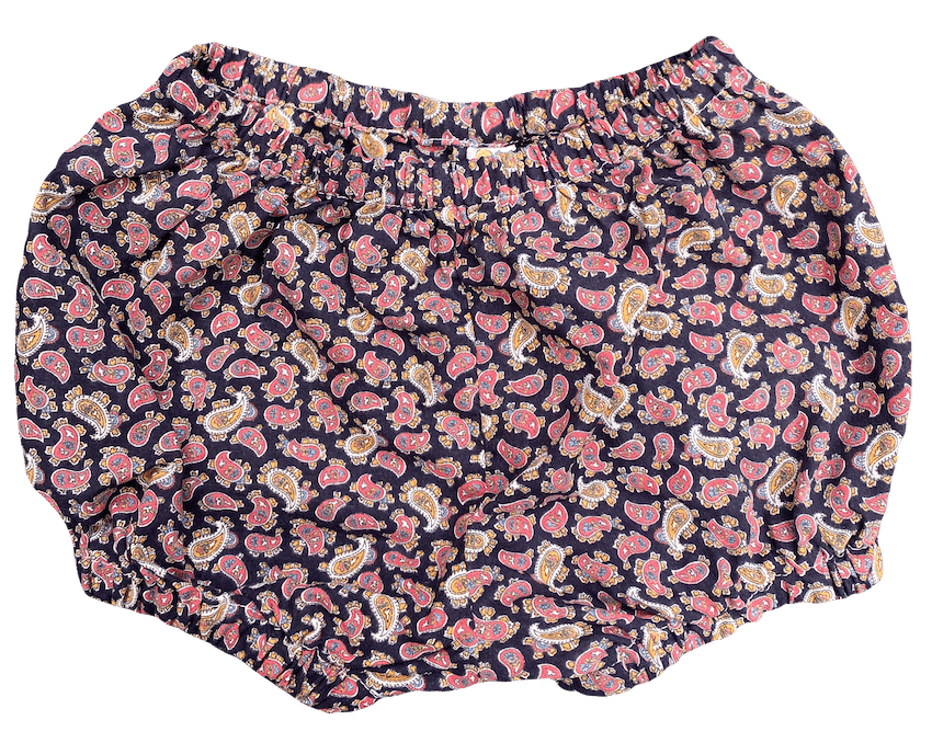 vintage navy, red and yellow paisley cotton drawstring dress and matching bloomers.
